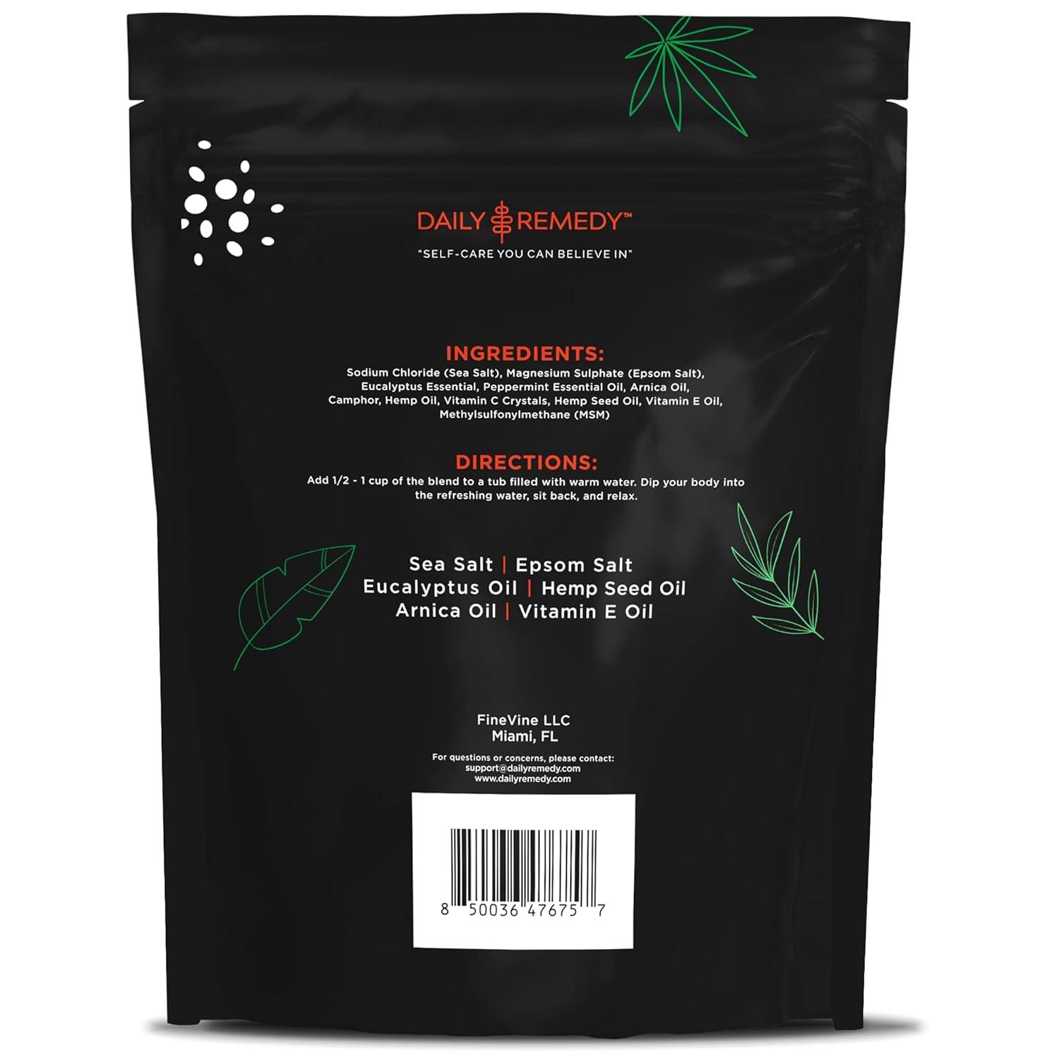Daily Remedy Body Soak is formulated with a blend of nutrient-rich natural sea salt and epsom salts, vitamin C crystals, plus eucalyptus, peppermint, hemp and hemp seed, arnica, and vitamin E oils. Let your hardworking body relax and helps jumpstart muscle recovery fast.