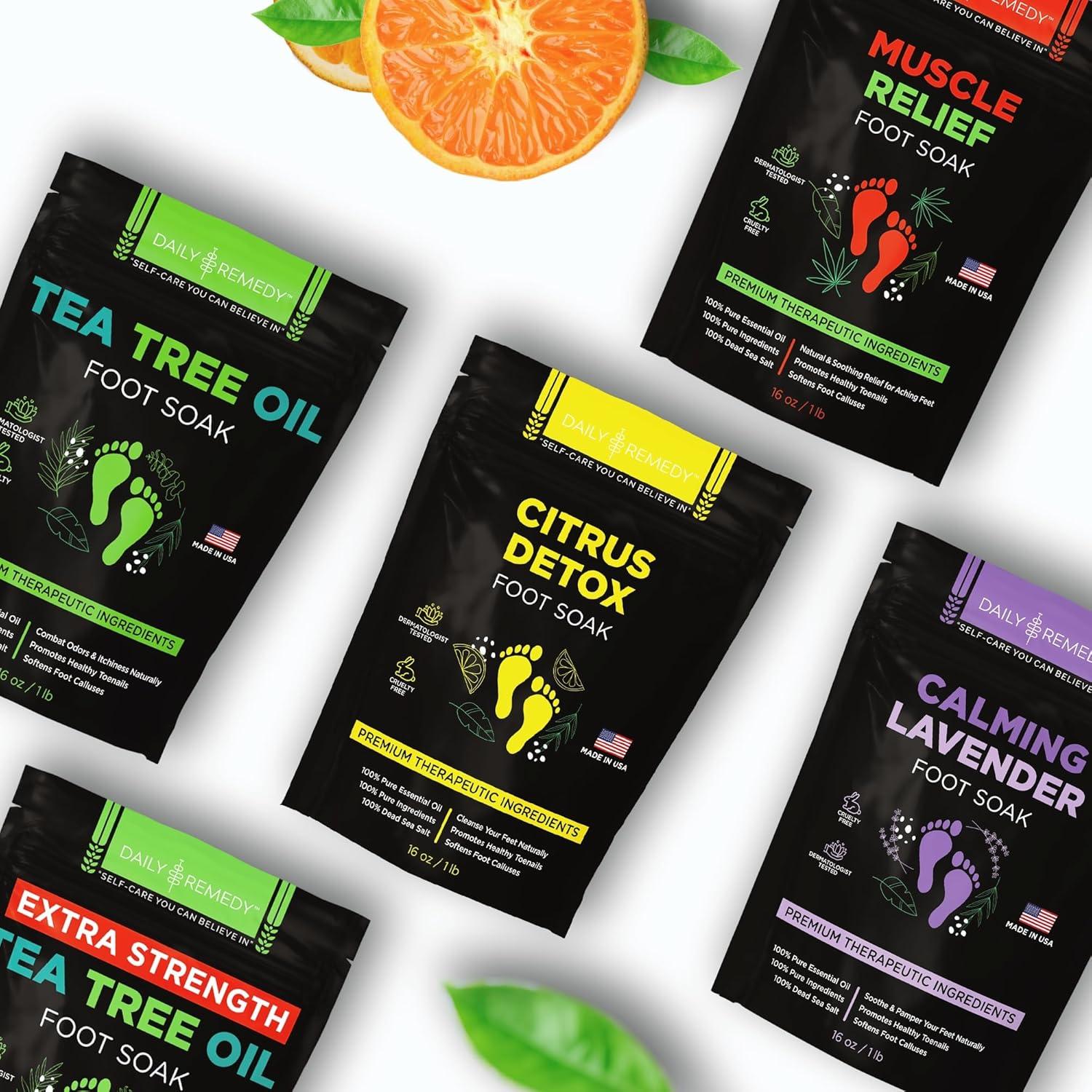 THE #1 SOAKS TO NOURISH & CLEANSE YOUR FEET [2-PACK]: Including a Tea Tree Oil Foot Soak for deep cleansing and a Citrus Foot Soak to attack all those harmful impurities, this set will breathe new life into your tired feet. Fast dissolving, they are perfect for athletes, sportspeople or anyone seeking for a complete foot-care routine at home!