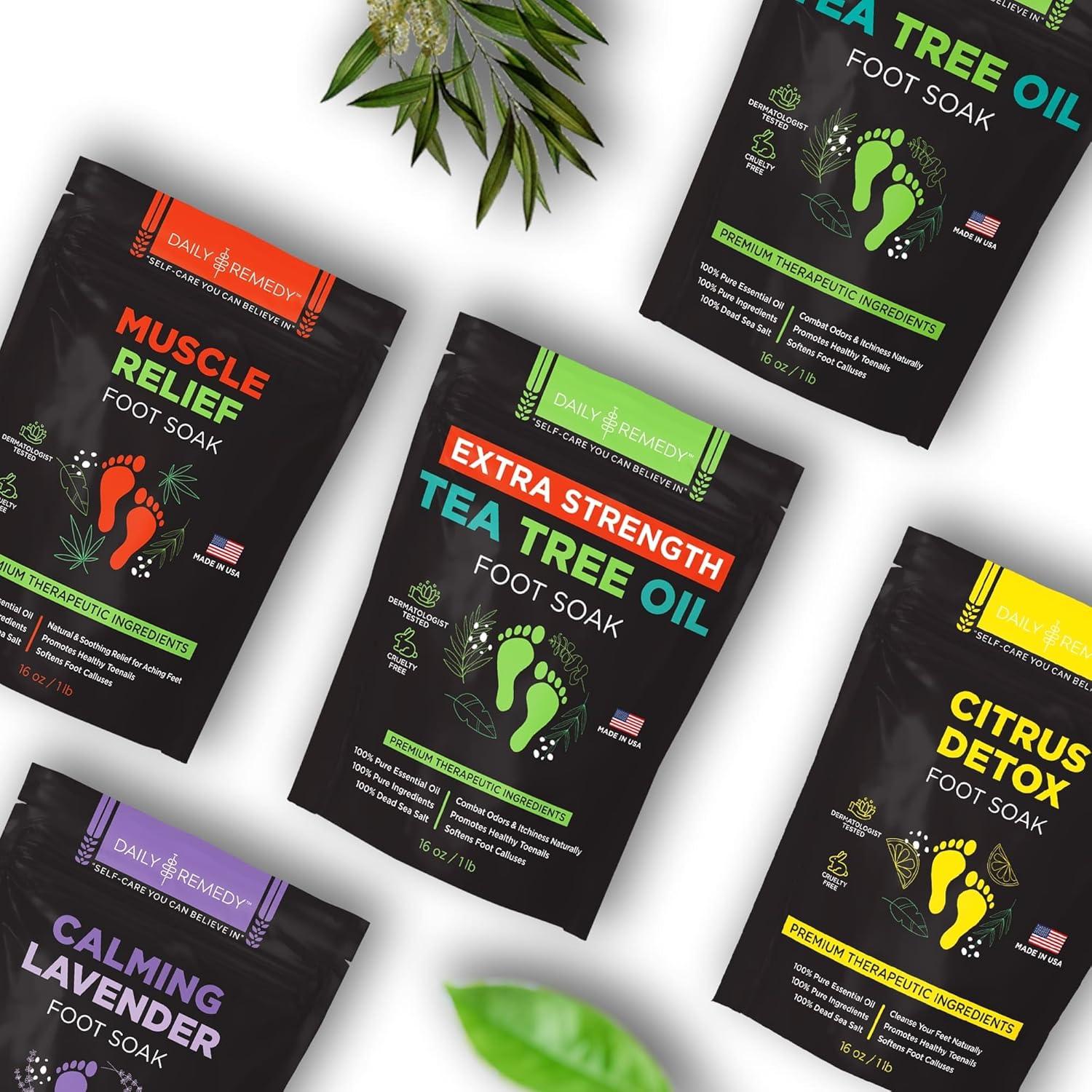 imageDAILY REMEDY 4Pack Foot Soak Set  2 Extra Strength Tea Tree Oil ampamp 2 Citrus Detox  Made In USA  Soothes Tired Feet Athletes Foot Stubborn Foot Odor Softens Calluses ampamp Refreshes ampamp Detoxifies4 Scents Combo